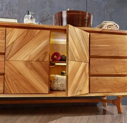 žlebičaste ročaje, vgrajene v teak profil.