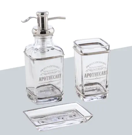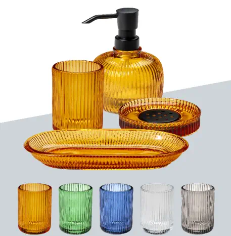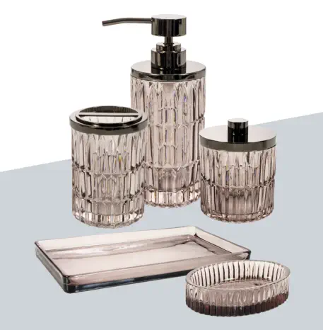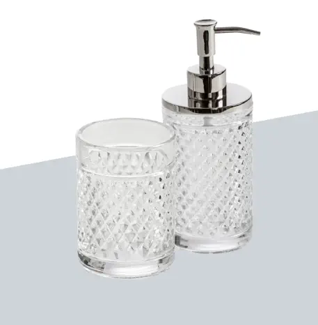 Odkrijte našo čudovito kolekcijo kopalniških dodatkov, ki vključuje podstavke za mila, dozirnike za tekoče milo, držala