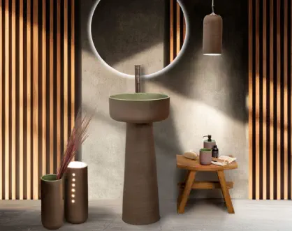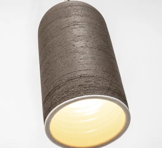 Zbirka visečih in stoječih svetilk izdelanih iz šamota in okrašenih z glazurami. Ročno izdelani.