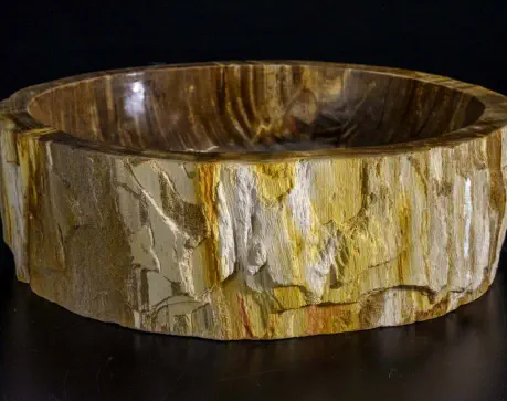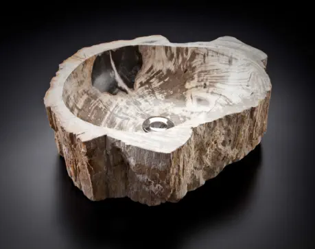 Namizni umivalnik, izdelan iz dela okamenelega drevesa.